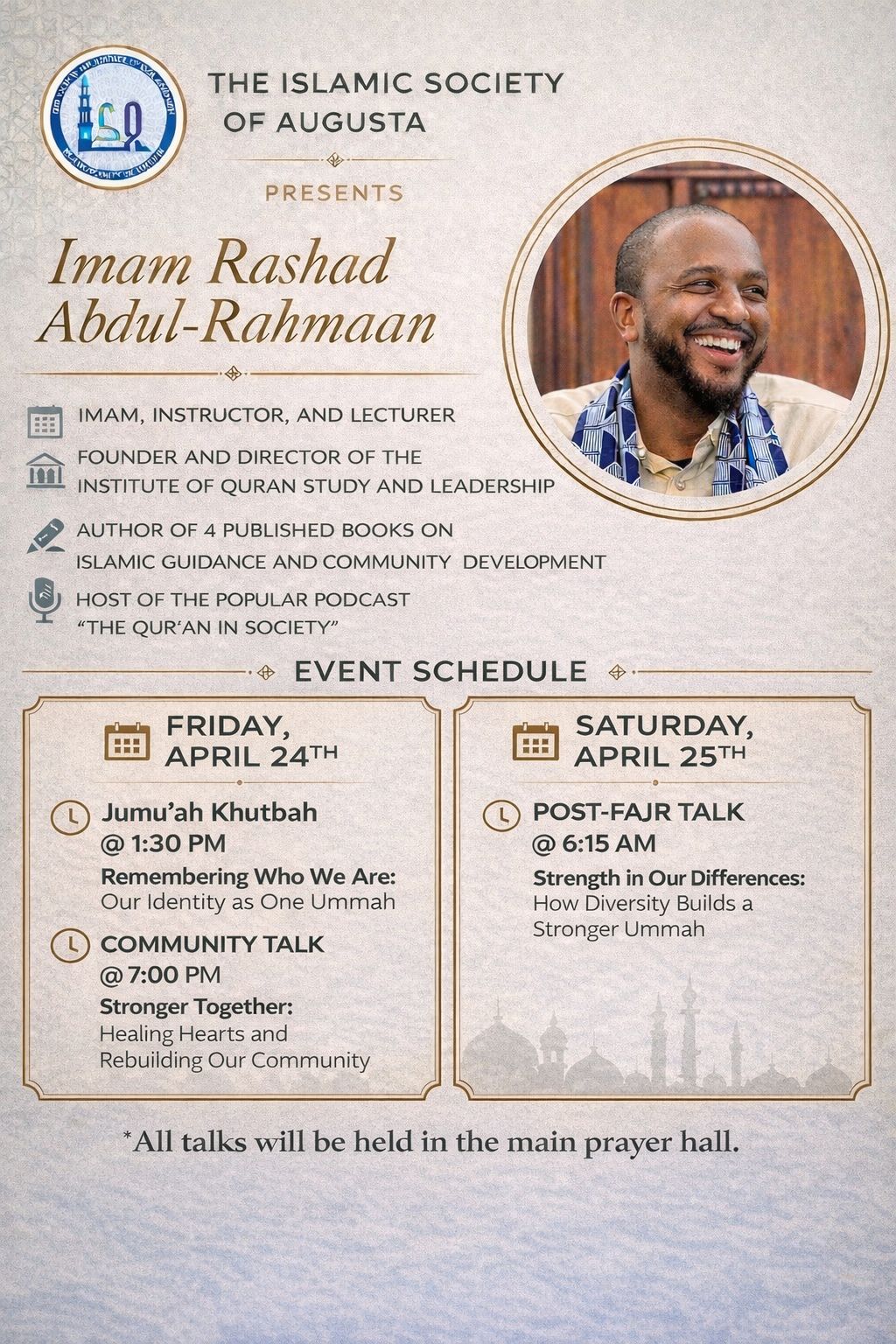 09/01/2025 – A jumu’ah shift is now being held at First Islamic Center (the old masjid).
